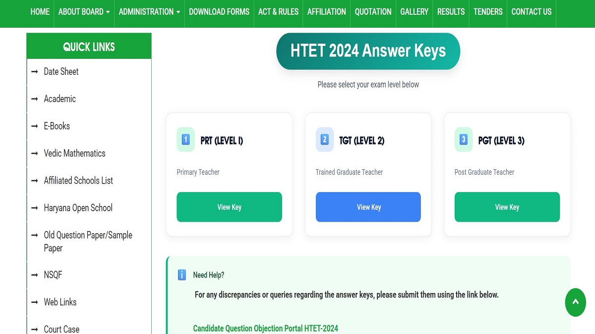 Download HTET Answer Key for PRT, TGT and PGT Here
