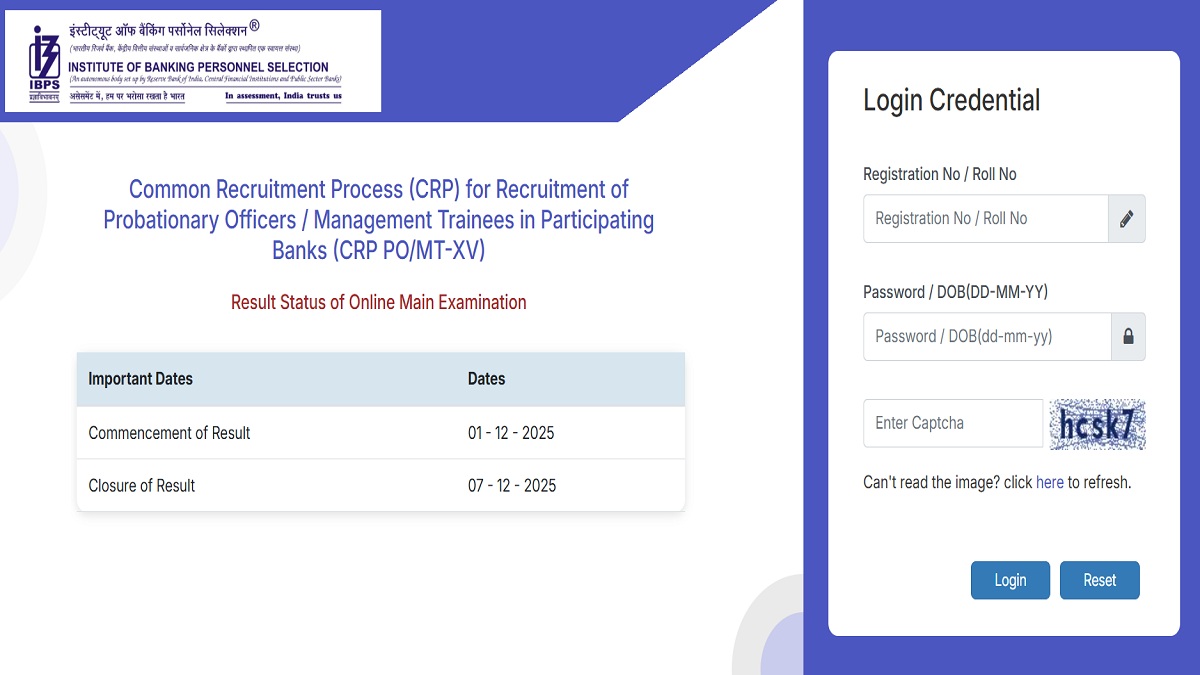 Candidates can check IBPS PO result on official website ibps.in under the “CRP PO/MT” section.