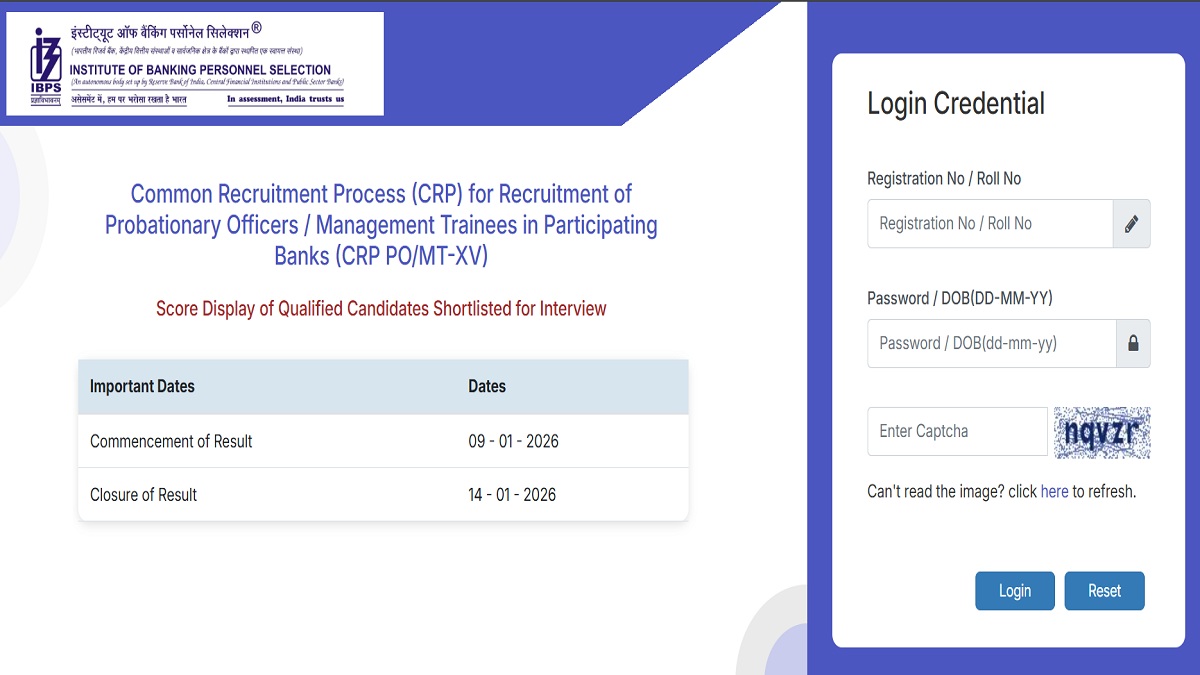 Login details needed to Download IBPS PO Scorecard 2025 for Shortlisted Candidates of Interview