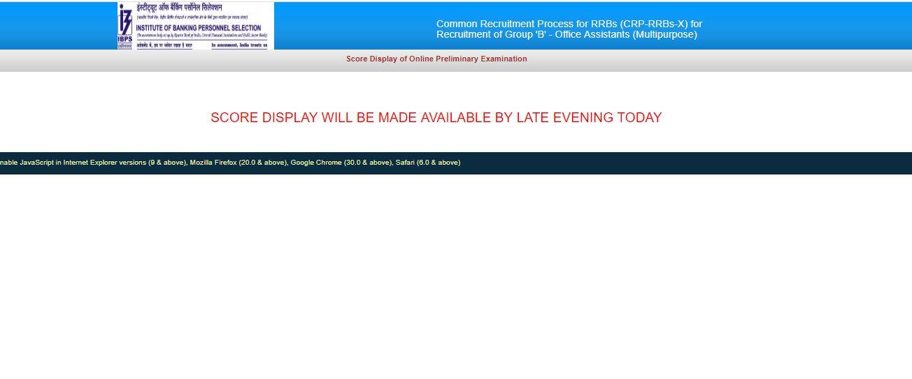 - Click the link, ‘View your Scores of Online Preliminary Examination for CRP-RRBs-X-Office Assistant (Multipurpose)’