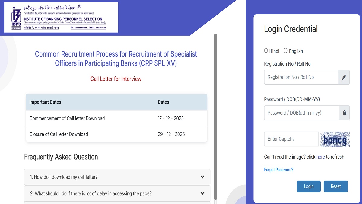 IBPS SO 2025 Interview Call Letter Out; Download CRP SPL-XV Hall Ticket at ibps.in