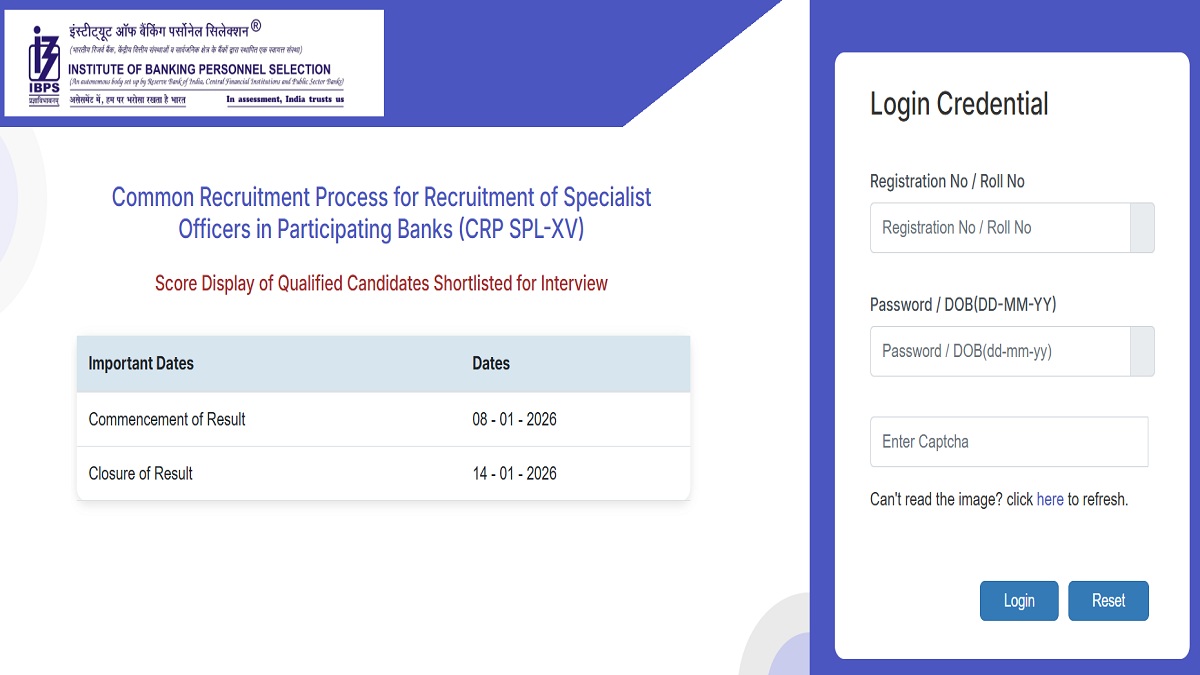 IBPS SO Scores 2025: Institute of Banking Personnel Selection has released scorecard for IBPS SO Main exam for candidates shortlisted for interview. Those who have appeared for exam can get IBPS SO scorecard download link from official website ibps.in. To check their IBPS SO mains marks, they need to use their registration number and date of birth in login tab.