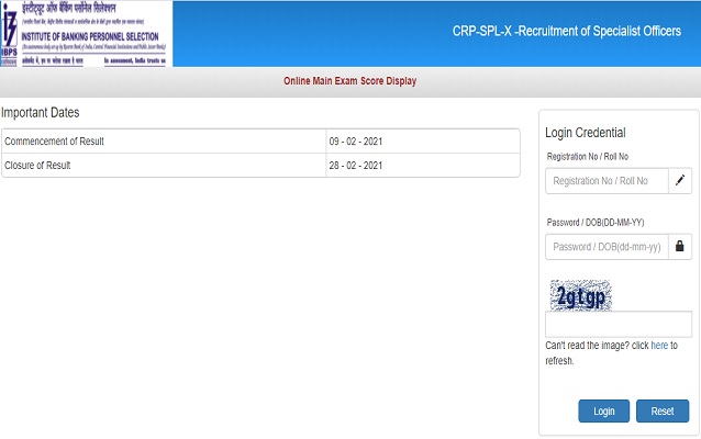 - A page for ‘CRP Specialist Officers – X’ will appear on screen, click on the link to view scores of online main examination for CRP SPL-X
