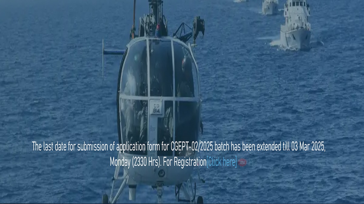 ICG Navik/Yantrik 2025 Application: The Indian Coast Guard has extended the deadline to fill out the ICG Navik (General Duty) and Yantrik application form. Now, candidates can fill out the ICG Navik/Yantrik application form till March 3, 2025. The official website states, "The last date for submission of application form for CGEPT-02/2025 batch has been extended till 03 Mar 2025, Monday (2330 Hrs)."