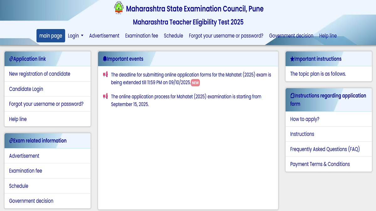 MAHA TET Registration 2025 Last Date (9 Oct) LIVE: Get Eligibility & Exam Dates @mahatet.in