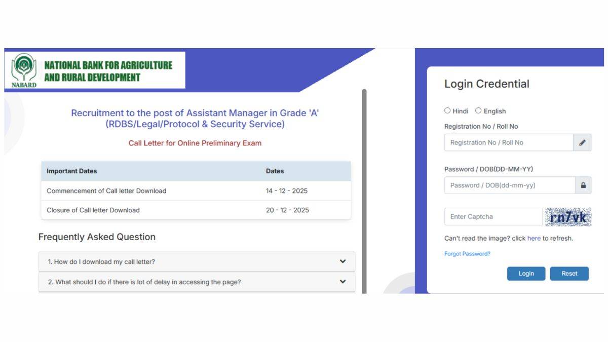 NABARD Grade A 2025 admit card has been released for exam to be held on December 20. Candidates can download NABARD Grade A prelims call letter online at official website nabard.org. Check steps and get direct download link here