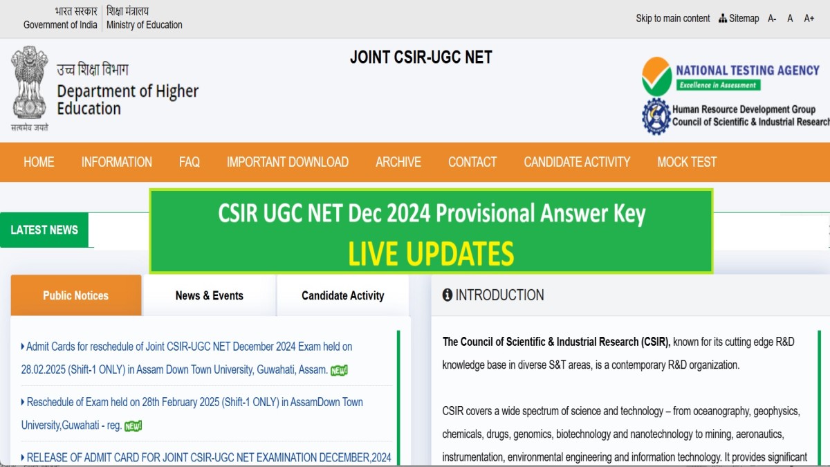 CSIR UGC NET Dec 2024 Provisional Answer Key LIVE