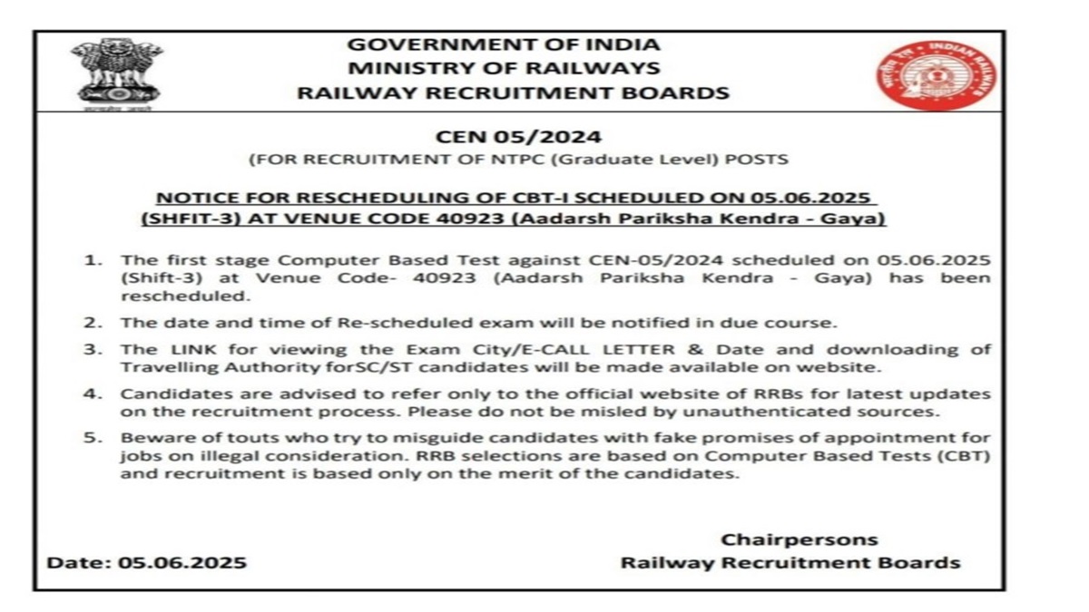 RRB NTPC CBT 1 2025 Exam Cancelled at One Centre in Bihar; New Exam Dates Soon
