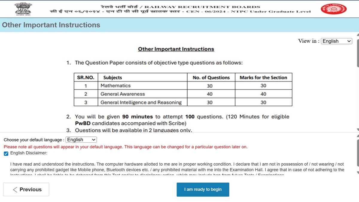 Railway Recruitment Boards (RRBs) have activated the RRB NTPC Undergraduate mock test link. RRB NTPC UG exam pattern has been revised. The examination authority has added section-wise marks in the pattern. According to the revised exam pattern, Maths section carries 30 marks whereas General Awareness section carries 40 marks. The General Intelligence & Reasoning section carries 30 marks. RRB NTPC CBT 1 exam carries 100 questions for 100 marks. The total duration of the test is 90 minutes (120 minutes for PwBD candidates). The exam is conducted in three shifts.