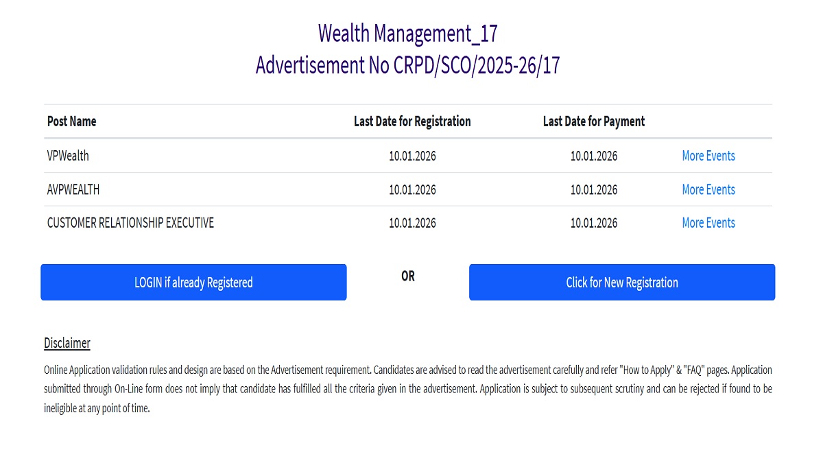 SBI SO Recruitment: State Bank of India has extended deadline to fill application form of SBI SO 2025 today. Candidates can apply online SBI SO VP Wealth (SRM), AVP Wealth (RM), and Customer Relationship Executive posts by visiting official website sbi.bank.in/web/careers/current-openings. Last date to complete SBI SO 2025-26 application form is January 10.