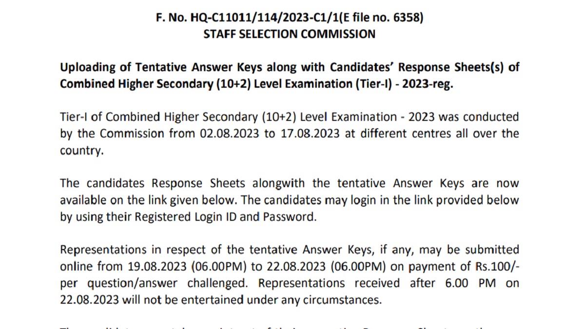 SSC CHSL Answer Key 2023 Live: Staff Selection Commission (SSC) has released the tentative answer key along with candidates’ response sheets of the Combined Higher Secondary (10+2) Level Examination (Tier-I) 2023 on August 19, 2023. The SSC CHSL answer key 2023 PDF has been activated along with the online objection link. Candidates can submit their objections against the tentative SSC CHSL answer key 2023 Tier 1 till August 22, 2023.