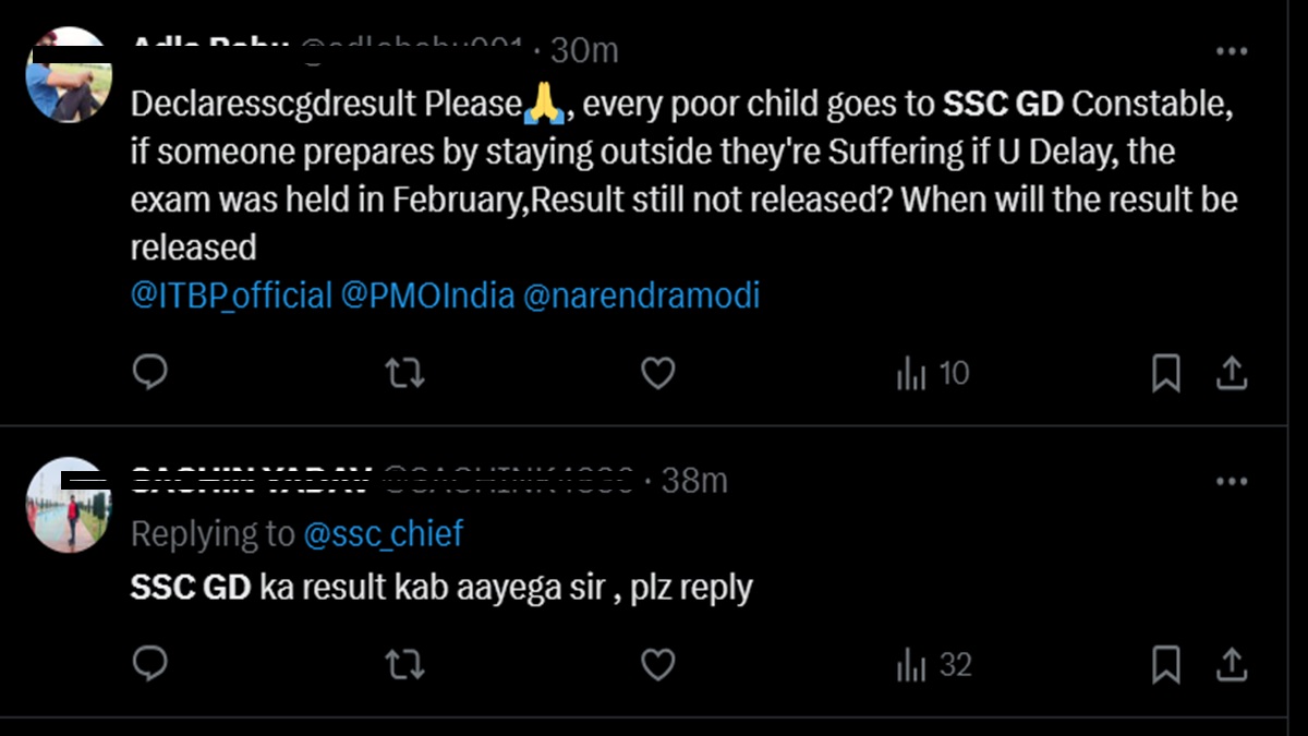 The SSC GD result 2024 is expected to be released soon. As per the sources, the SSC GD result PDF 2024 will be out by the end of June 2024. However, there is no official update on the results as of now. Candidates who took the exam have become restless and are demanding the SSC GD result 2024 release. Many even took it to social media handle X showing their concerns over the delay in the SSC GD Constable results announcement. Have a look at a few tweets below: