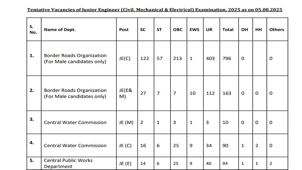 SSC JE 2025 vacancies have been increased, as per a notice released today. Candidates can check here SSC JE 2025 post and category-wise increased vacancies here