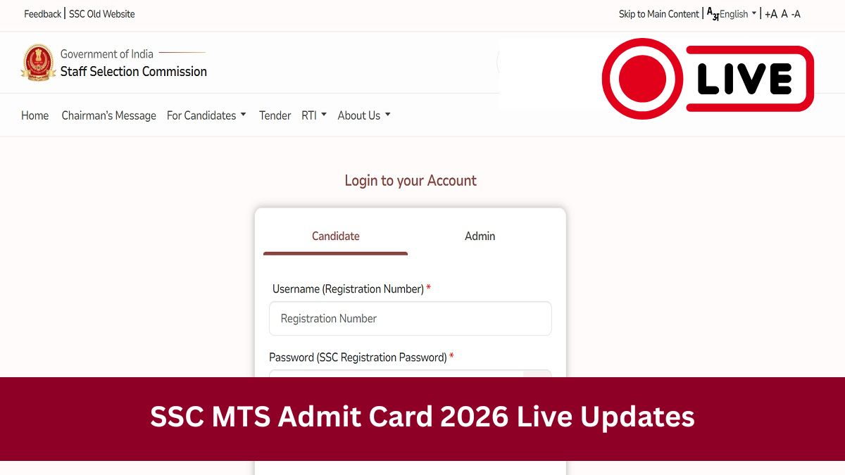 SSC MTS Admit Card LIVE: Staff Selection Commission has released SSC MTS admit card 2026 for 2025 session soon on its official website: ssc.gov.in. The Commission will conduct SSC MTS for 2025 session from February 4. Candidates must note that SSC MTS city intimation has already been released on January 28 for all those who have registered.