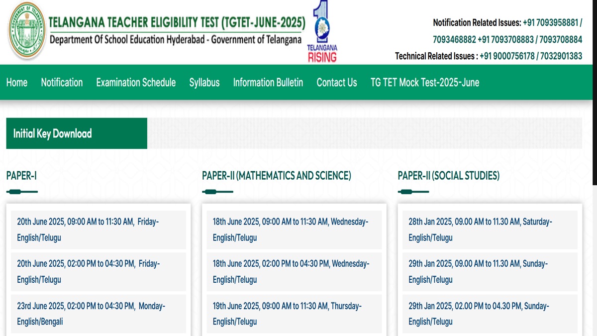The Department of School Education, Telangana, released the initial key of the TSTET June 2025 exam. The TS TET answer key 2025 PDF download link has been activated on the official website- tgtet.aptonline.in/tgtet. The TS TET key 2025 has been displayed separately for Paper 1, Paper 2 (Maths & Science) and Paper 2 (Social Studies). The TSTET response sheet 2025 has been released along with the answers. Candidates who took the exam can download the keys using the direct TSTET key 2025 PDF download link shared below. Also, candidates can download their respective TSTET response sheets using the link below.