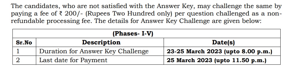 A: Candidates need to pay INR 200 per question as a fee for challenging the answer key. The fee needs to be paid in online mode through credit card/debit card/internet banking/ UPI. The NTA recently reduced the objection fee for the candidates. Earlier, the candidates have to pay INR 1000 per question to make objections against the released provisional answer key. - 3:03 PM IST• 22 Mar 2023