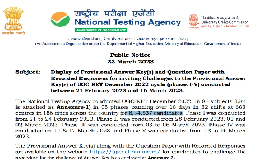 are available on the website-ugcnet.nta.nic.in/ for candidates to challenge. - 3:40 PM IST• 24 Mar 2023