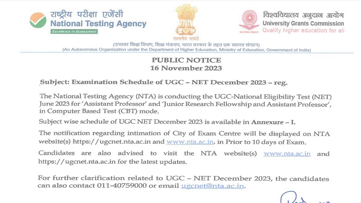 UGC NET 2023 exam dates have been announced for different subjects. The December session of UGC NET 2023 exam will be held from December 6 to December 22, 2023. The city intimation will be released 10 days before the exam. Read here for more details.