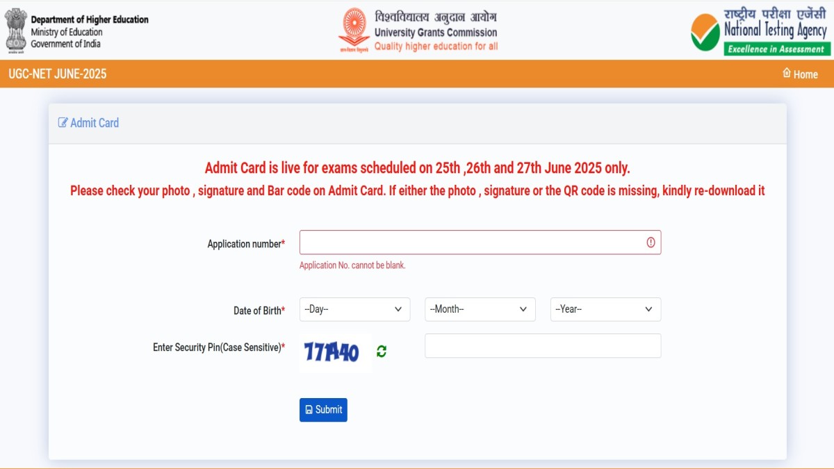 Direct link to download UGC NET 2025 June Admit Card for June 27 exam: https://ugcnetjun2025.ntaonline.in/admitcard/index