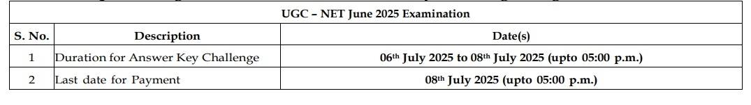 UGC NET Answer Key 2025 OUT: The National Testing Agency (NTA) released the provisional UGC NET answer key for the June 2025 exam at ugcnet.nta.ac.in. Candidates can review their responses and raise objections until July 8, 2025 (up to 5 PM), with a fee of INR 200 per question. The authority will review objections, publish a final key, and then declare the results. The last date for fee payment is July 8, 2025 (up to 5 PM). The payment of the processing fee may be made through (through Credit Card/ Debit Card/Net Banking/UPI Payment Modes till July 8, 2025 (upto 05:00 p.m.). No challenge will be entertained without receipt of the processing fee. The Challenges will not be accepted through any other mode.