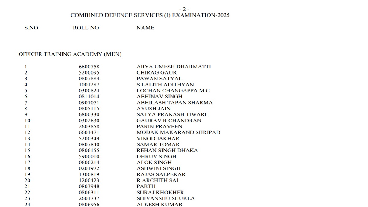 CDS I Final Result: Union Public Service Commission has released final CDS 1 OTA merit list of candidates who have qualified in exam. A total of 535 candidates including 473 men and 62 women have been selected based on their written exam results and interviews conducted by Services Selection Board (SSB) of the Ministry of Defence. Candidates can download their CDS 1 OTA final result online at official website upsc.gov.in. They do not have to use any login details, as CDS 1 merit list 2025 has been released in PDF format.