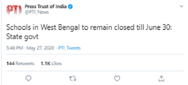 West Bengal Education Minister Partha Chatterjee has said that the schools will remain closed until June 30.