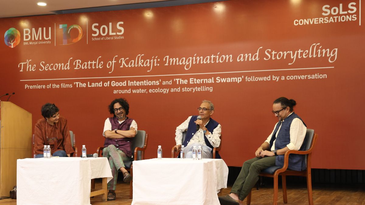 BML Munjal University SoLS conversation witnessed three short films, i.e. The Land of Good Intentions, The Eternal Swamp, and The Price of Water (Jwoler Dor), showcasing powerful stories on water, development, and humanity’s bond with nature at the premises of the event period.