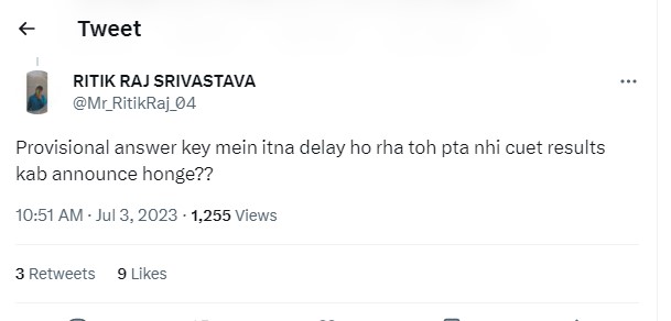 A number of student also expressed concern regarding the CUET UG result 2023 date. Here's how a student reacted after UGC Chairman tweet: