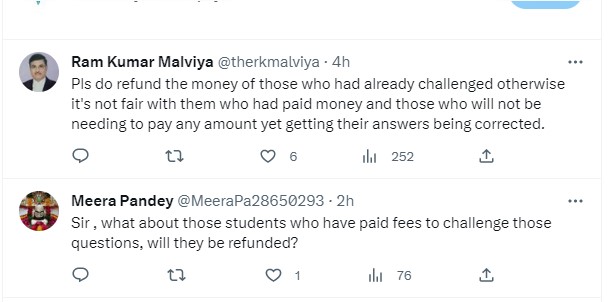 After the latest tweet of UGC Chairman regarding the Provisional Answer Key challenge and fee, a number of students took to the social media handle to express their concern. Check out a few candidates tweet related to Answer Key challenge refund: