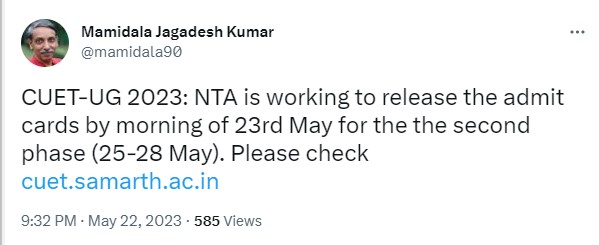 CUET Admit Card 2023 Phase 2 Admit Card on May 23