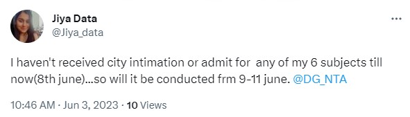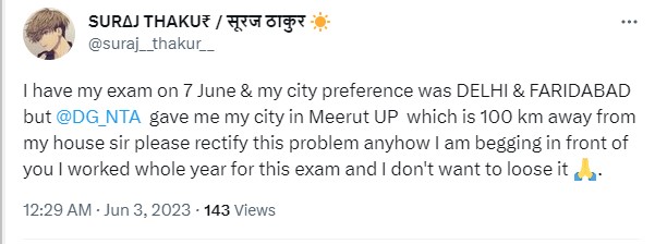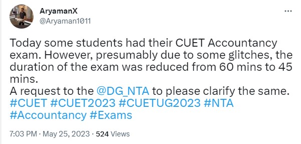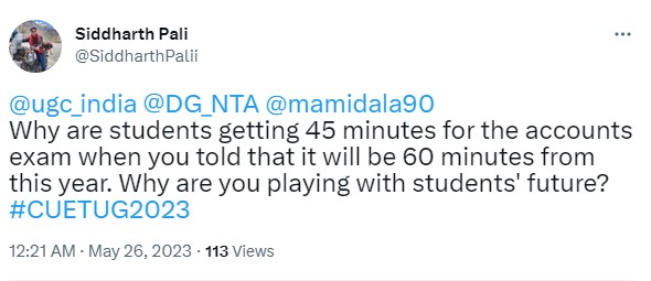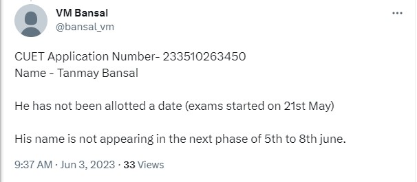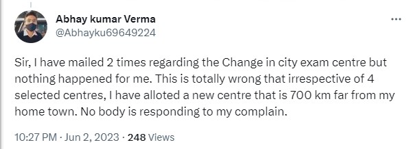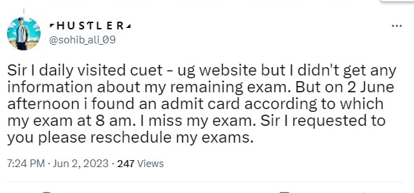 Some of the candidates have complained that they did not receive the CUET admit card 2023 on time, which led to missing of their exam. They have requested NTA to look into it and reschedule their exam.