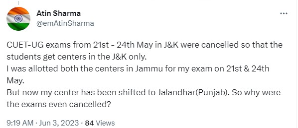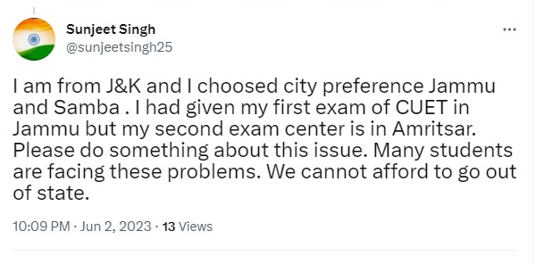 CUET 2023 J&K Candidates Complain Centre Allotment in Different State