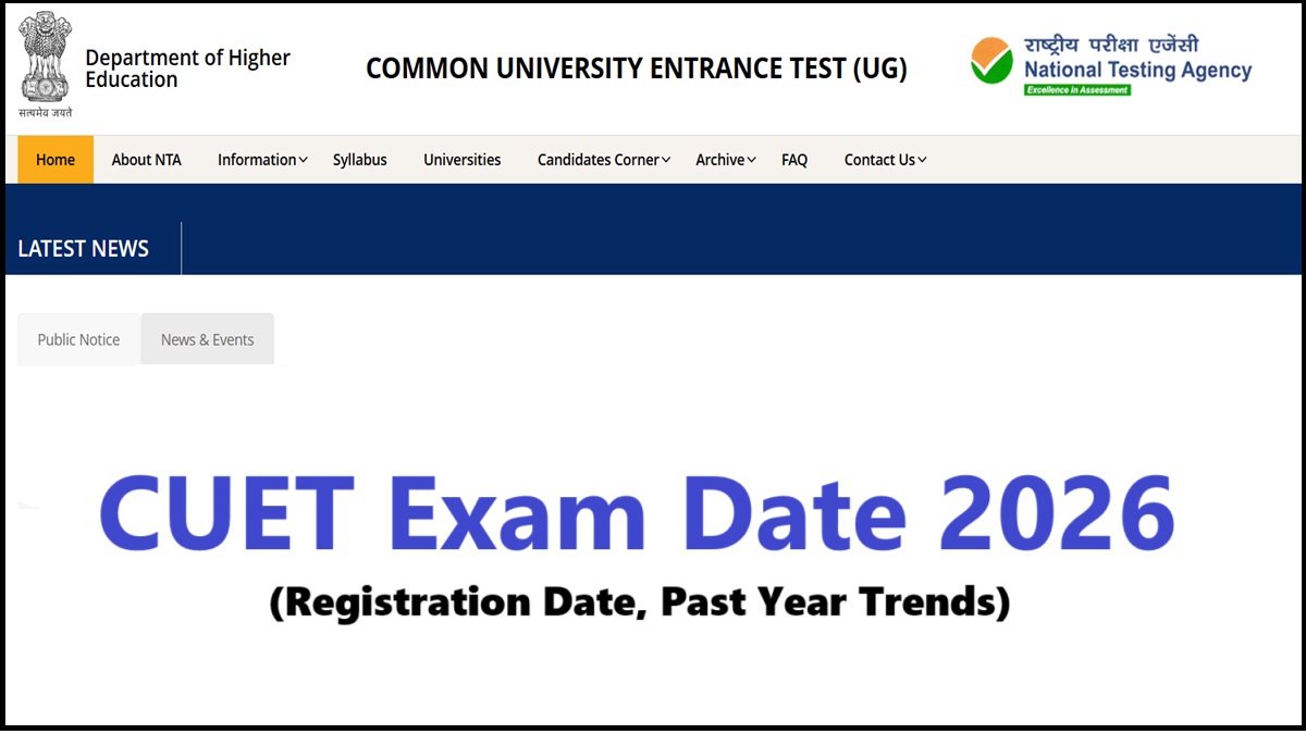 CUET UG exam date 2026 will be announced by NTA on official website. Candidates eagerly await for announcement of CUET 2026 exam date and commencement of CUET registration 2026. Based on past year trends check expected CUET application form 2026 release date and last date to apply here.