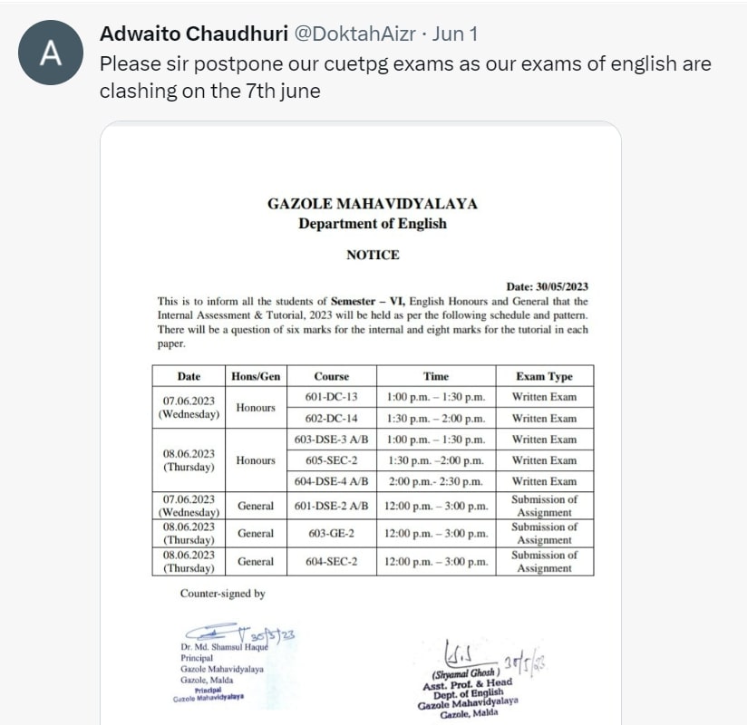 CUET PG 2023 Exam- Date sheet for exams from June 5 to June 17