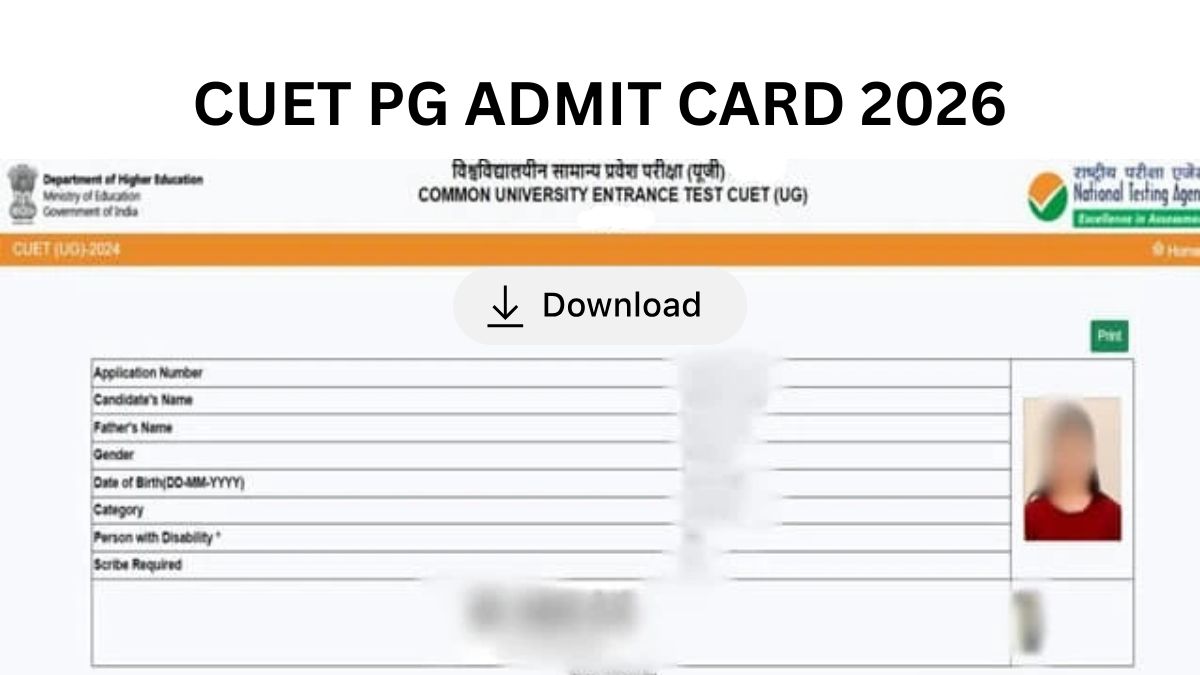 The National Testing Agency (NTA) has released the CUET PG 2026 admit card for students who are appearing on March 11, 12 and 13. Appearing candidates can download CUET PG admit card 2026 for the March 11 to 13 exams in online mode at the official website. They can download the CUET PG 2026 Hall Ticket by visiting the official website using their registration number and date of birth.