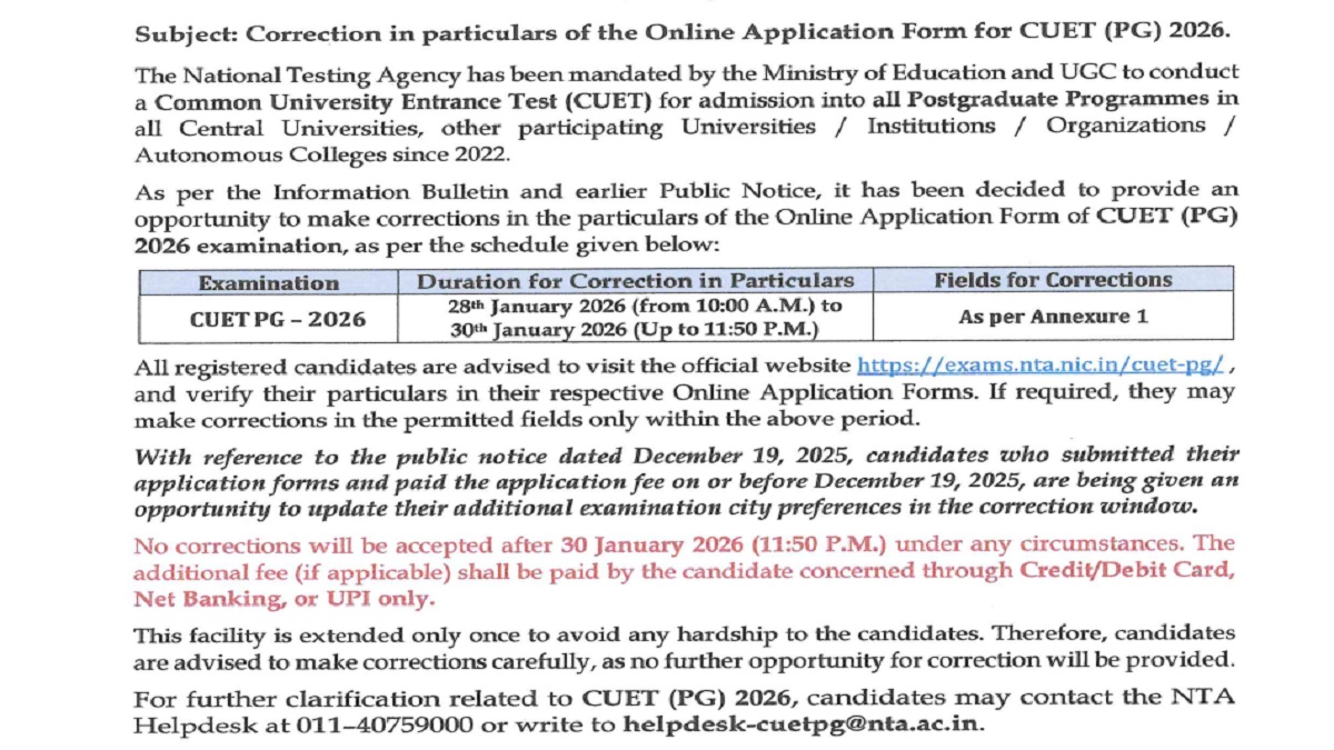 Also Read: CUET PG 2026 Application Correction LIVE Updates
