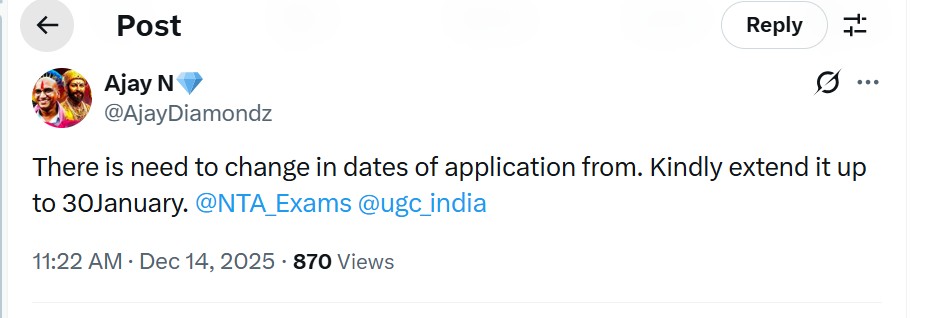 Students have requested to extend the CUET PG 2026 application last date to January 30, 2026. Check the post below.