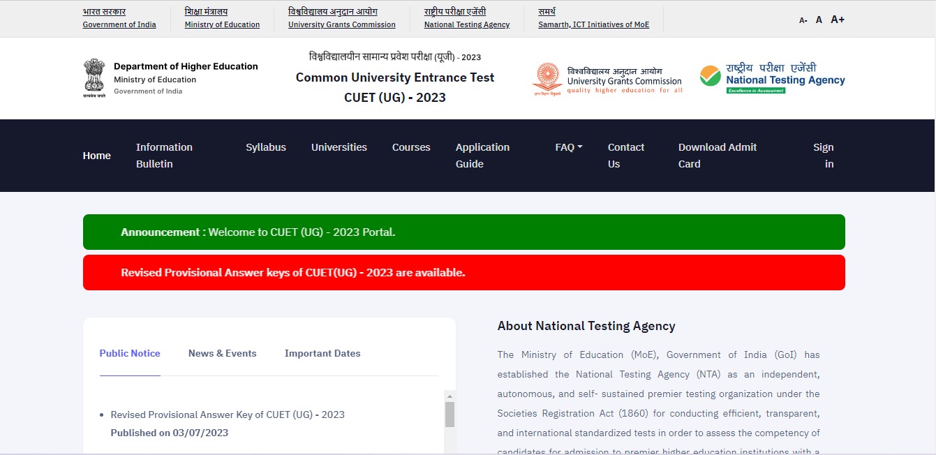 Candidates can below the homepage of CUET UG official website. Candidates will be informed about CUET UG Result here on this page: