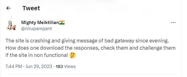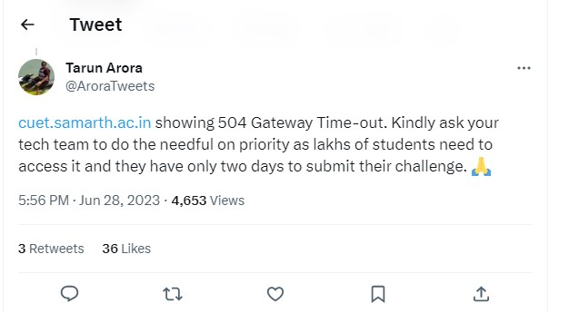CUET 2023 Answer Key was released at the official website of the exam on June 28. A number of students are unable to open the Answer Key Challenge link. Candidates also wrote their issue on their social media handle. Check out students reacions below: