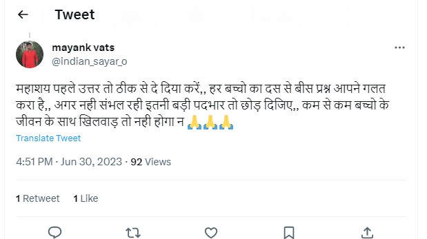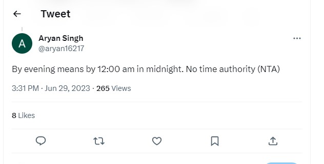 UGC Chairman stated that the CUET UG question paper and response sheet will be released today by evening. Responding to the same, a candidates tweeted this: