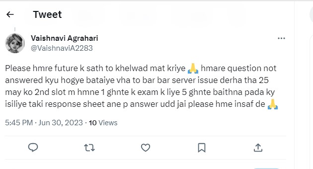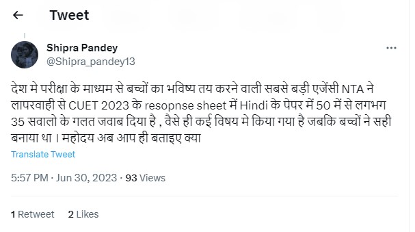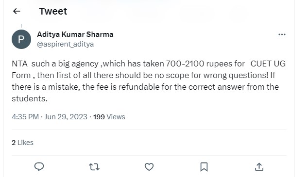 A few students also took to their social media to complain about the CUET UG Answer Key Challenge fee which is non refundable. Here is what a student tweeted.