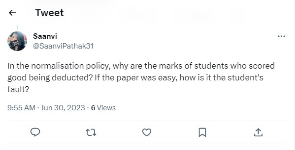 As CUET is using the normalisation techniques form marks analysis, a student expressed his disatisfaction regarding the same after the answer key release. Check out the student reaction below: