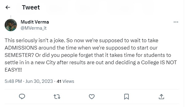 After the UGC Chairman, MJ Kumar, about the CUET UG 2023 answer key challenge date extension on Twitter handle, candidates have started asking him about the release time of the response sheet. Check out a student tweet below: