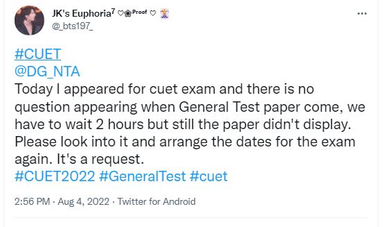 Rajesh, a test taker of CUET 2022 Slot 1 said, βI had appeared for Home Science paper but the answer options were not correct. The questions also took a long time to load on the system for which a lot of time was lost. Although we were given extra time, the delay impacted my patience.β
