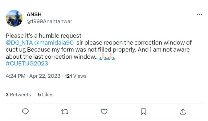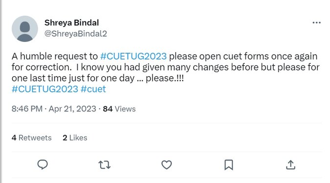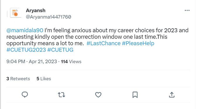 CUET UG 2023: Several aspirants have flooded the social media platforms urging the National Testing Agency (NTA) to reopen the CUET Application Correction Window 2023 at least one more time. Some students have claimed that they wish to add a subject to the Common University Entrance Test (CUET) UG 2023, while others have claimed that they didn't get enough time to make corrections or changes in the CUET UG Application Form 2023.