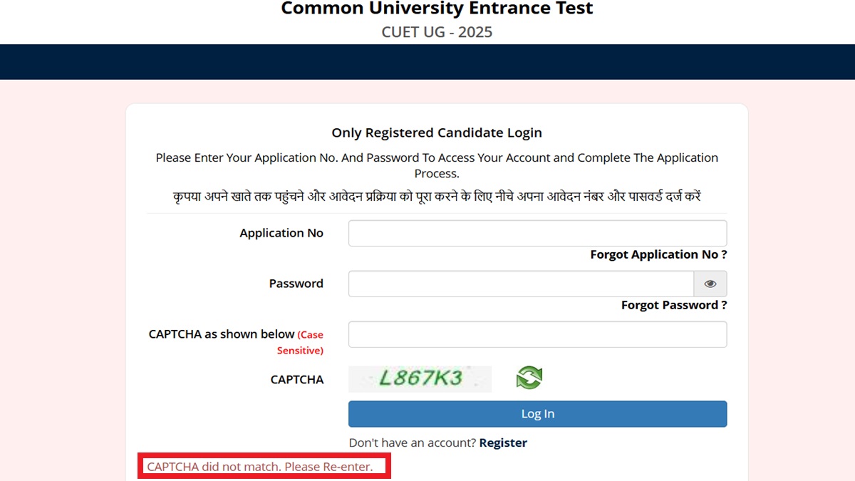 CUET UG 2025 Login Issue: Captcha Error Prevents Access