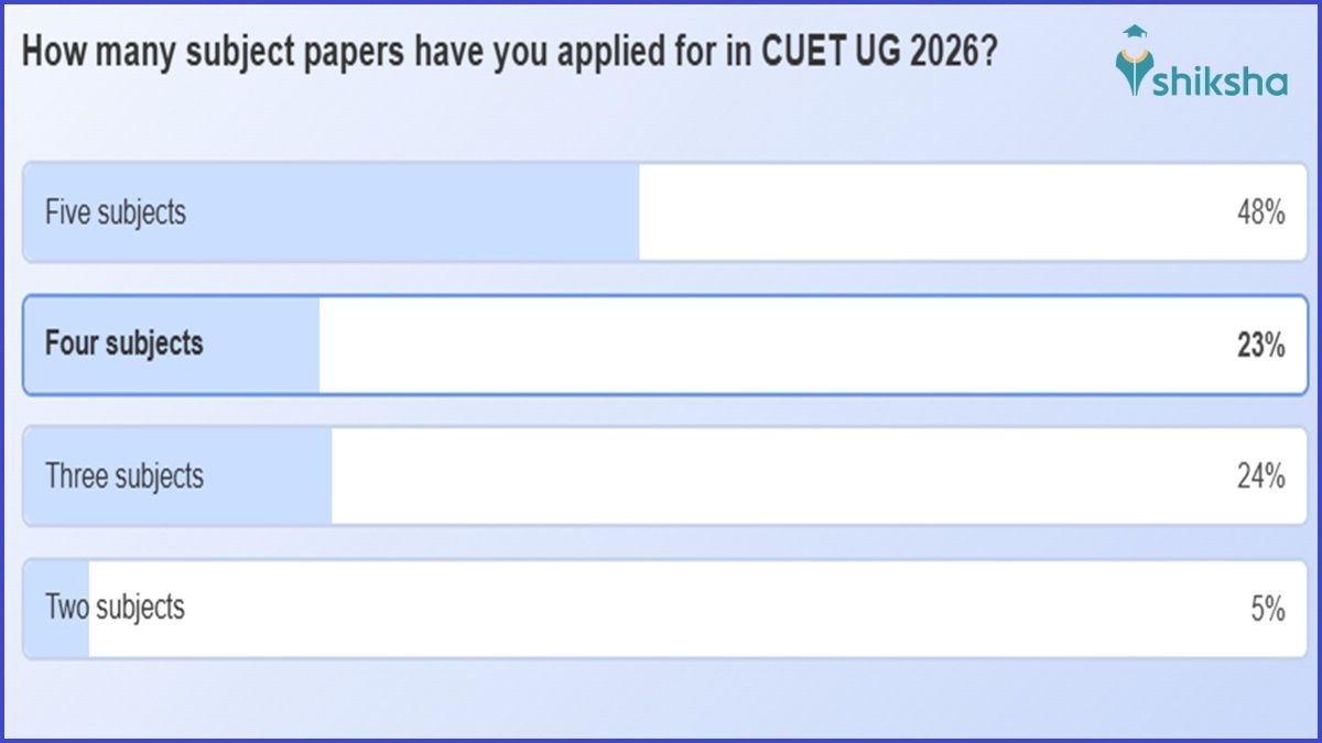 Common University Entrance Test 2026 registration window is closing today at 11.50 PM. A recent poll conducted by Shiksha.com on CUET UG 2026 subject selection has revealed how aspirants are approaching the Common University Entrance Test (CUET) for undergraduate admissions this year. The poll highlights clear trends in the number of CUET 2026 subject papers students are opting for, reflecting both competitive strategies and growing awareness about university admission criteria. Candidates can opt for maximum five CUET subjects while filling the application form.