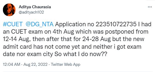 After releasing the CUET UG 2022 Phase 6 admit cards, candidates have complained about mismatch in exam centres or dates. While some students have been allotted different slots for same day test, others have been allotted centres other than their preferential list. On the other hand, some candidates also received admit card mentioning older exam dates. Sample some tweets below.