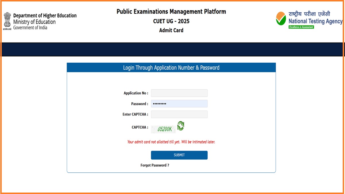 As per the notification, CUET UG 2025 admit card is expected to release today by evening. The link to download the CUET 2025 admit card will be updated shortly. Candidates must enter their login details to view the CUET admit card PDF