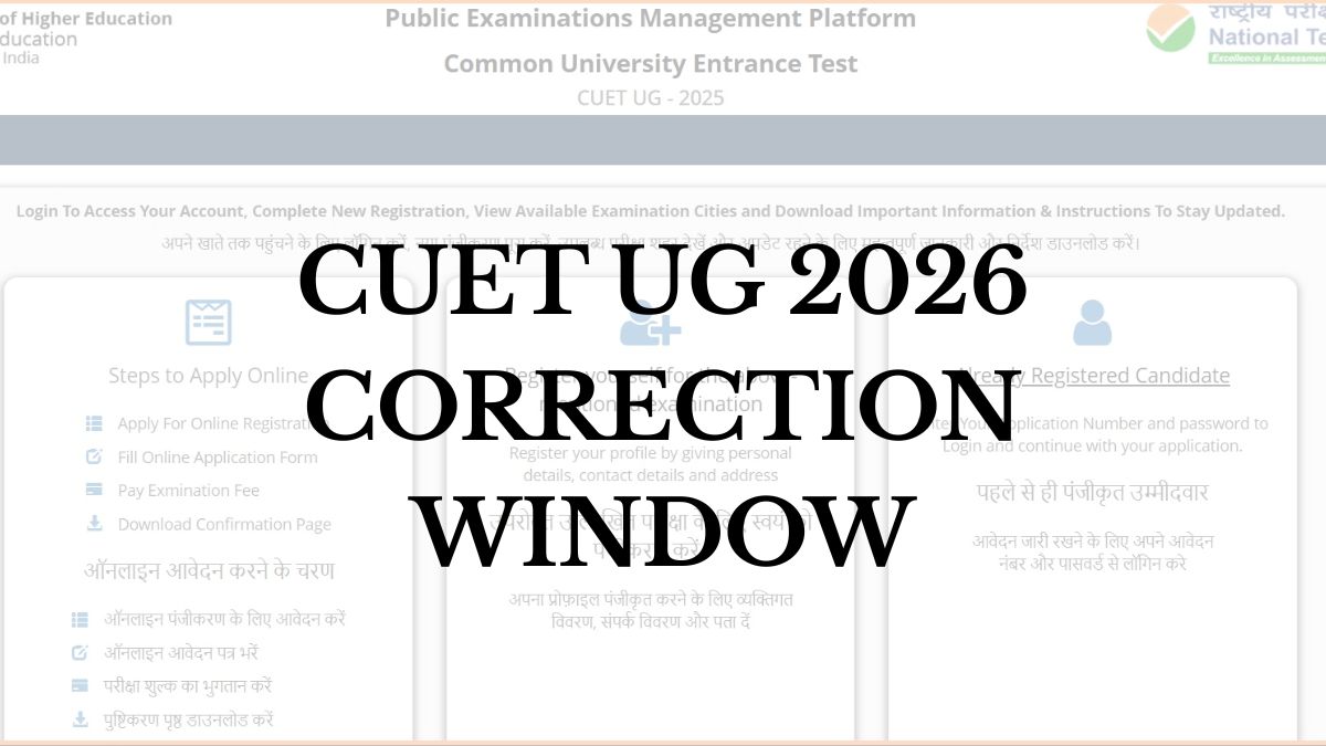 National Testing Agency will open CUET UG correction window 2026 on February 09 at cuet.nta.nic.in. Registered candidates will be able to make changes in CUET form 2026 in case of any error or mistake. Candidates will be able to edit few details in CUET application form. NTA closed CUET registration 2026 window on February 04, 2026. Candidates who have completed the application process can pay the application fee till February 07. Candidates must ensure to complete the CUET application process to appear for exam.